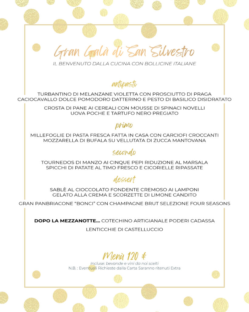4 Dicembre 2025 News Il Gran Cenone di San Silvestro e il Pranzo di Capodanno ✨ Celebra l’ultima notte dell’anno con il Gran Cenone di San Silvestro e inizia il 2026 con il nostro Pranzo di Capodanno firmato Four Seasons.🍽️ Menu d’autore • Atmosfera raffinata • Brindisi speciale I MENU Prenotazioni esclusivamente dal nostro sito web PRENOTA ORA! capodannocenonepranzosan Silvestro Share fb tw lnkd pin
